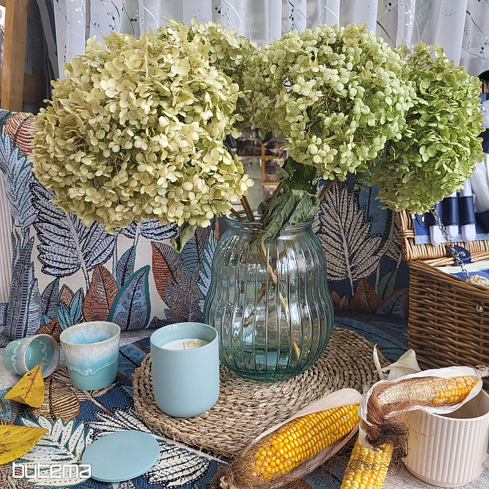 Váza ALBANIA z čirého skla se sezónní kyticí bude jedinečnou dekorací na vašem jídelním stole nebo v pergole.