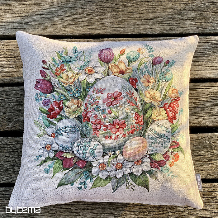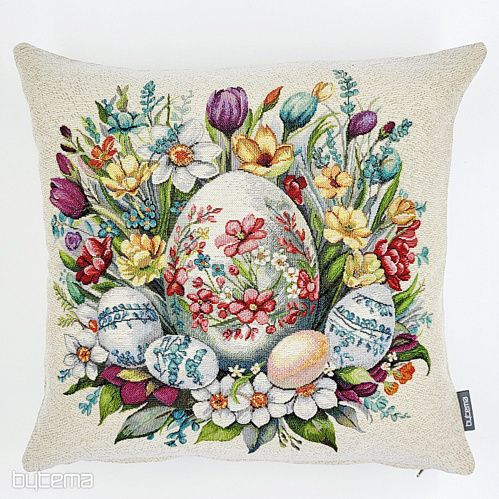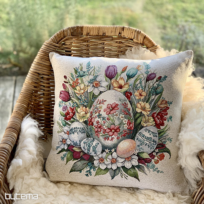Gobelínový povlak s červenými kraslicemi je krásnou dekorací pro Velikoční svátky.