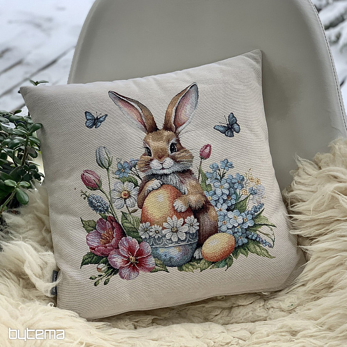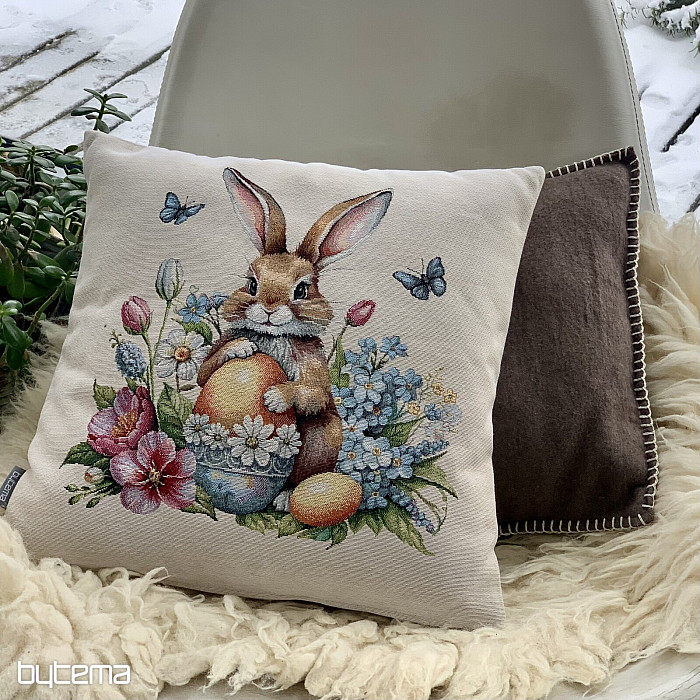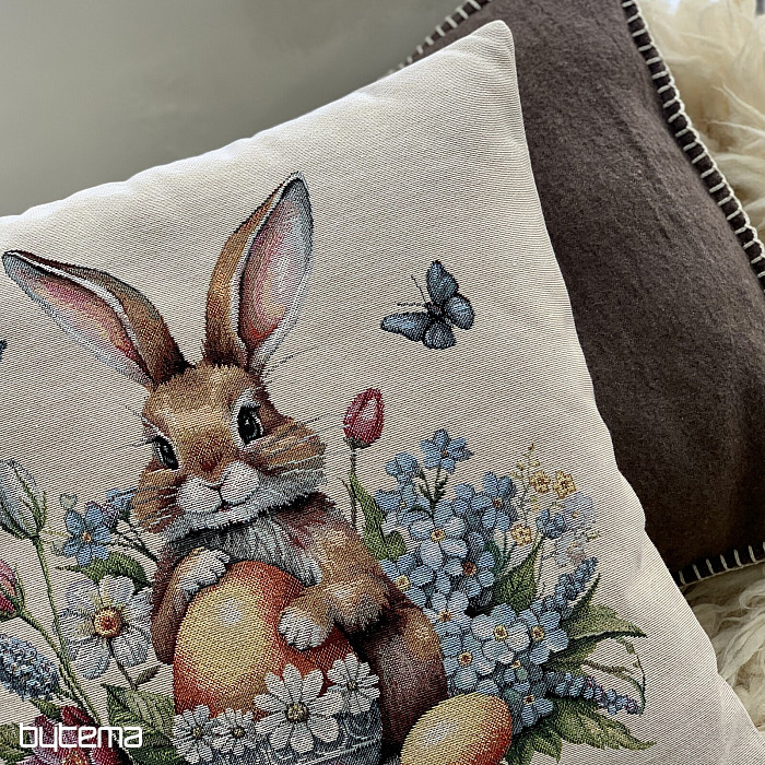 Gobelínový povlak s roztomilým zajíčkem a plný jarních květů zaručeně přenese Velikonoční atmosféru k vám.
