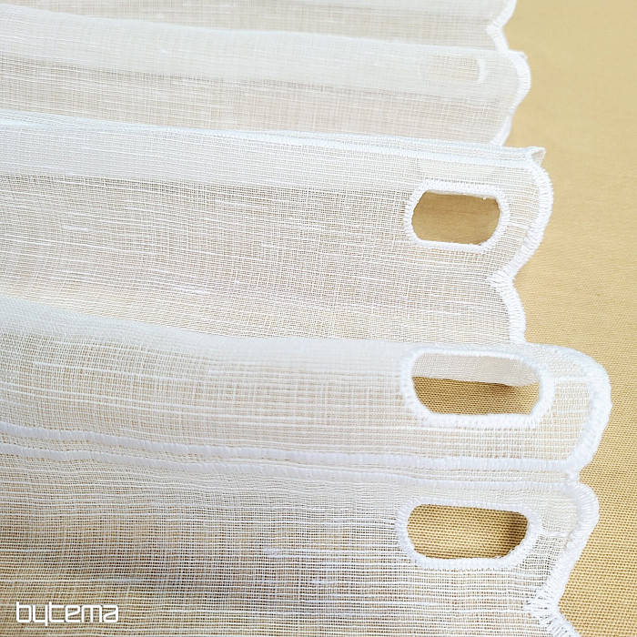 Všechny rozměry mají očka k navlečení na vitrážovou tyčku. Záclona je stříhána po panelech, netřeba ji zapošívat.