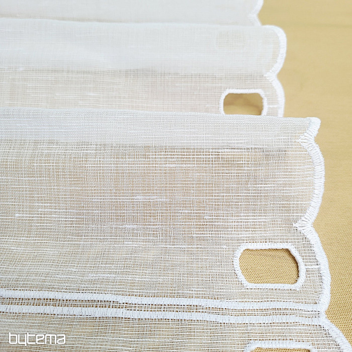 Všechny rozměry mají očka k navlečení na vitrážovou tyčku. Záclona je stříhána po panelech, netřeba ji zapošívat.