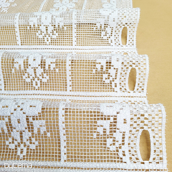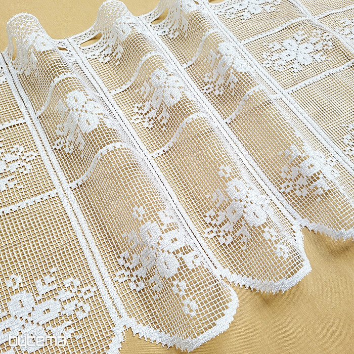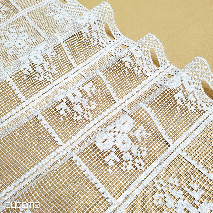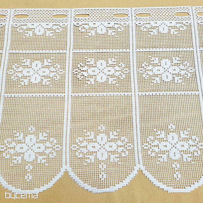 Krásná vitážová záclonka s květinovým vzorem. Záclonka vypadá jako háčkovaná a je vhodná do všech roubenek či venkovských stavení.