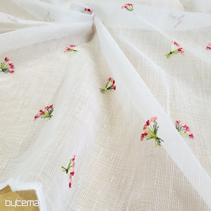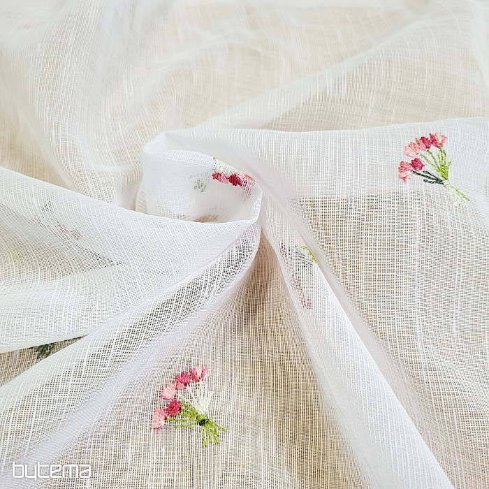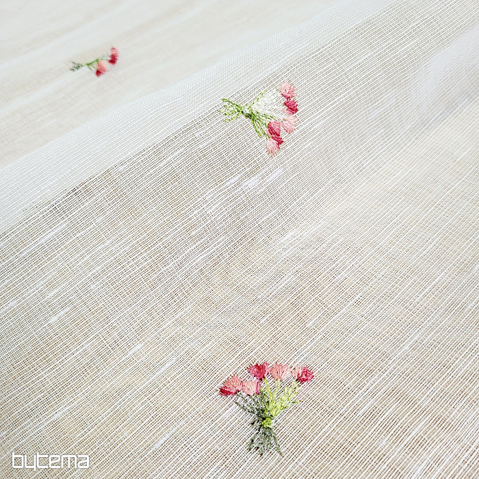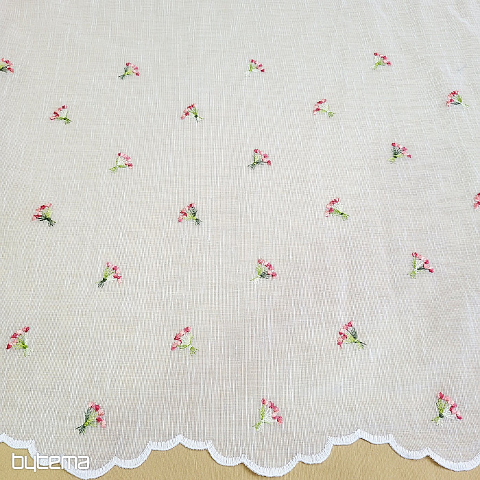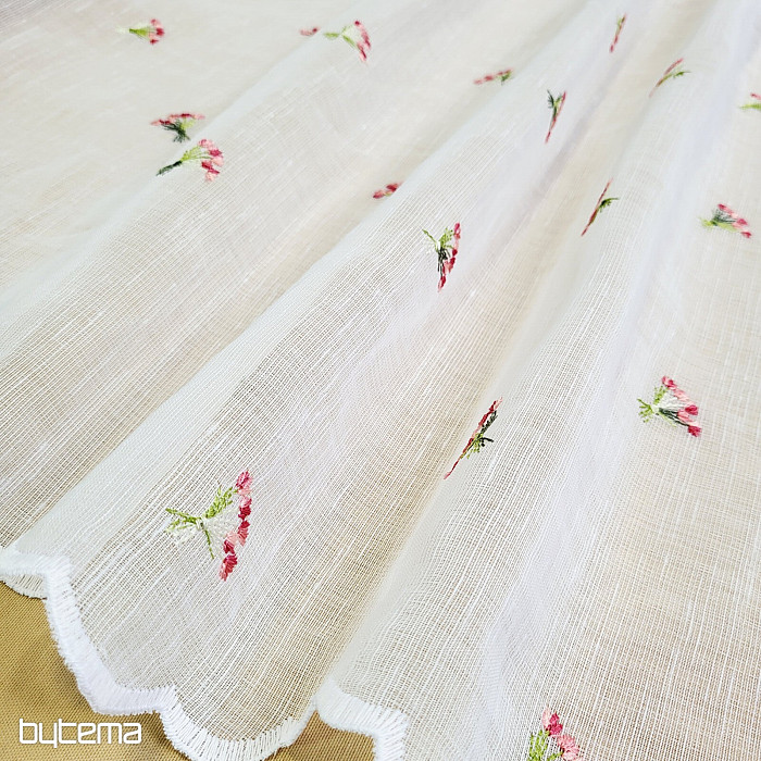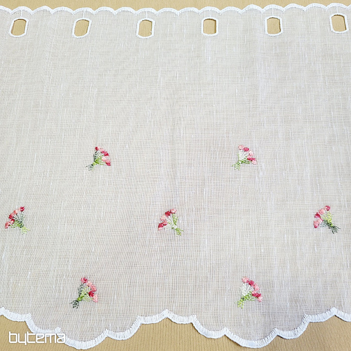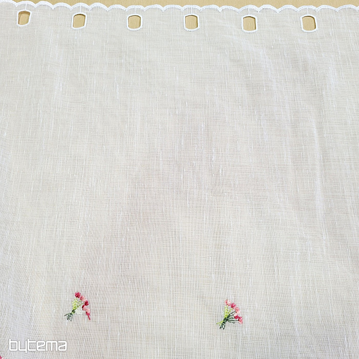 Záclonku nabízíme ve třech výškových rozměrech. Ve výšce 60cm a 90cm má záclonka vyšitou kytičku uprostřed panelu.