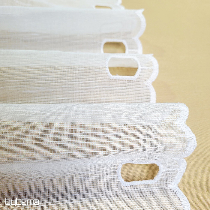 Všechny rozměry mají očka k navlečení na vitrážovou tyčku. Záclona je stříhána po panelech, netřeba ji zapošívat.