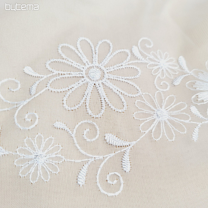 Lehká voálová, moderní vyšívaná záclona s vyšívanými bílými květinami, bude decentní a dokonalou ozdobou vašeho okna.
