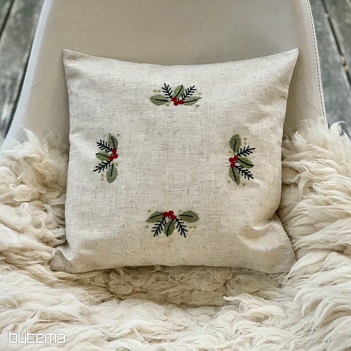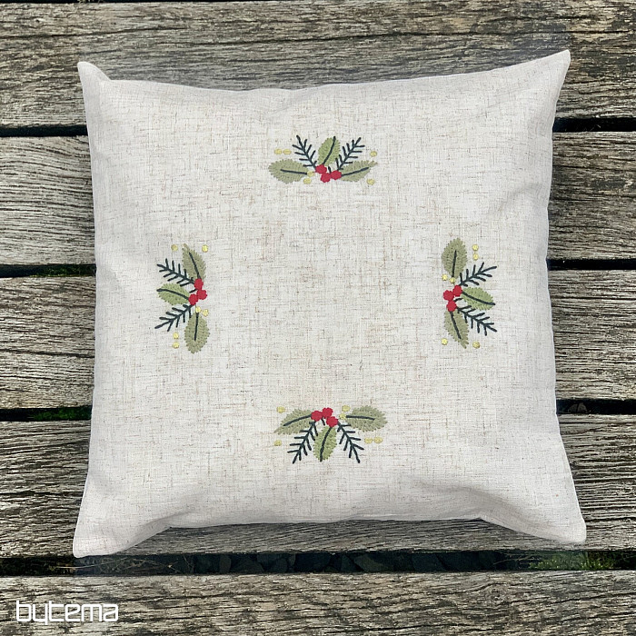 Vyšívaný povlak s vánočními větvičkami bude krásným doplňkem u vás doma. Vzor je vyšívaný pouze z přední strany.