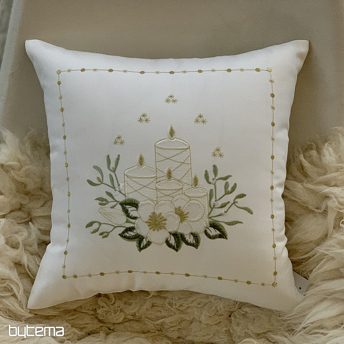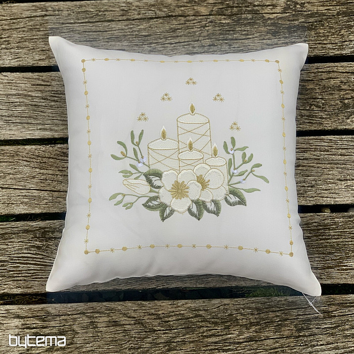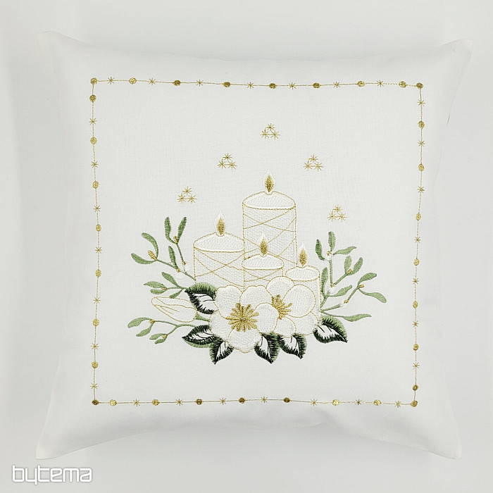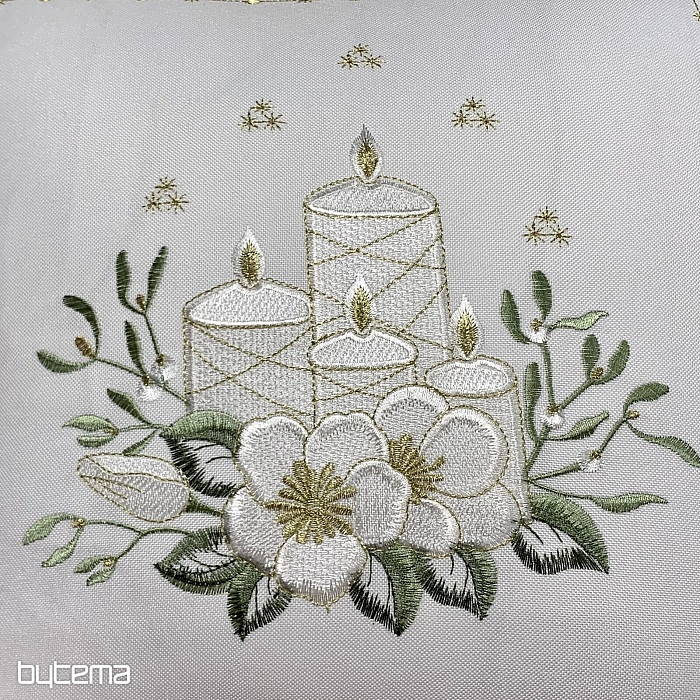 Vkusně a jemně vyšívaný vánoční povlak s adventními svíčkami v bílé barvě bude okouzlujícím doplňkem u vás doma.