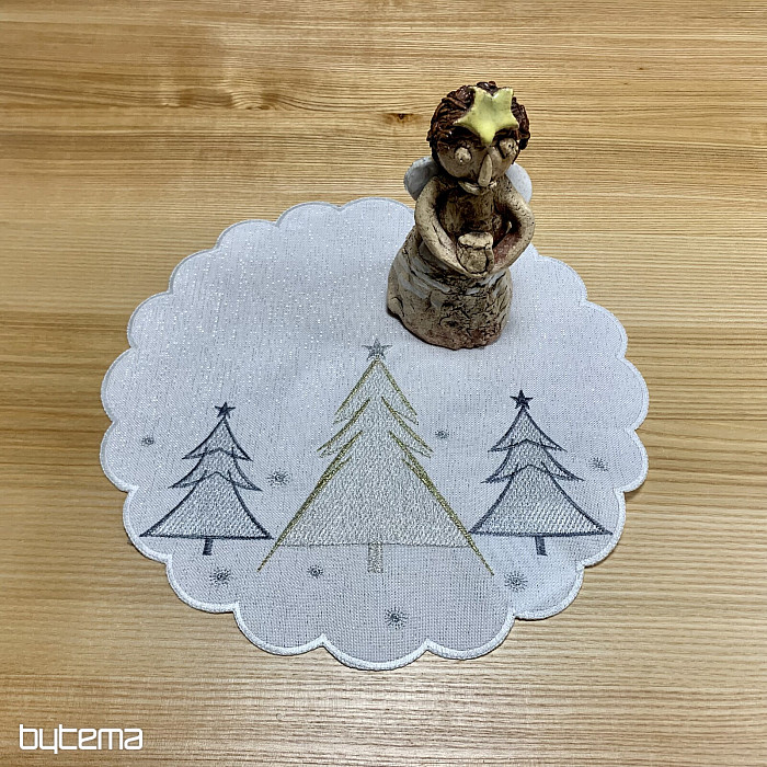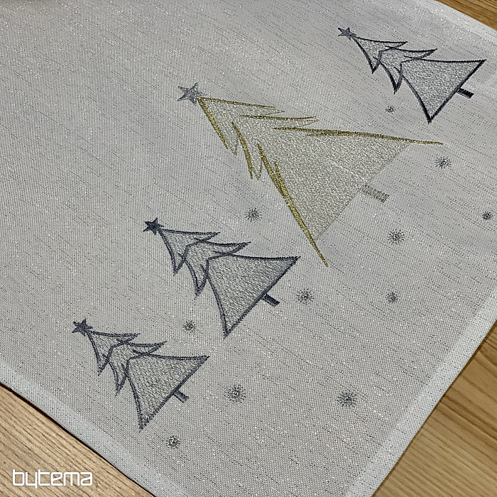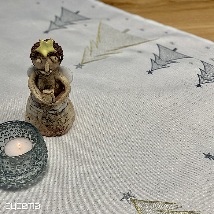 Vkusně a jemně vyšívaný vánoční ubrus a šál se stromečky ve dvou barvách bude okouzlujícím doplňkem u vás doma.