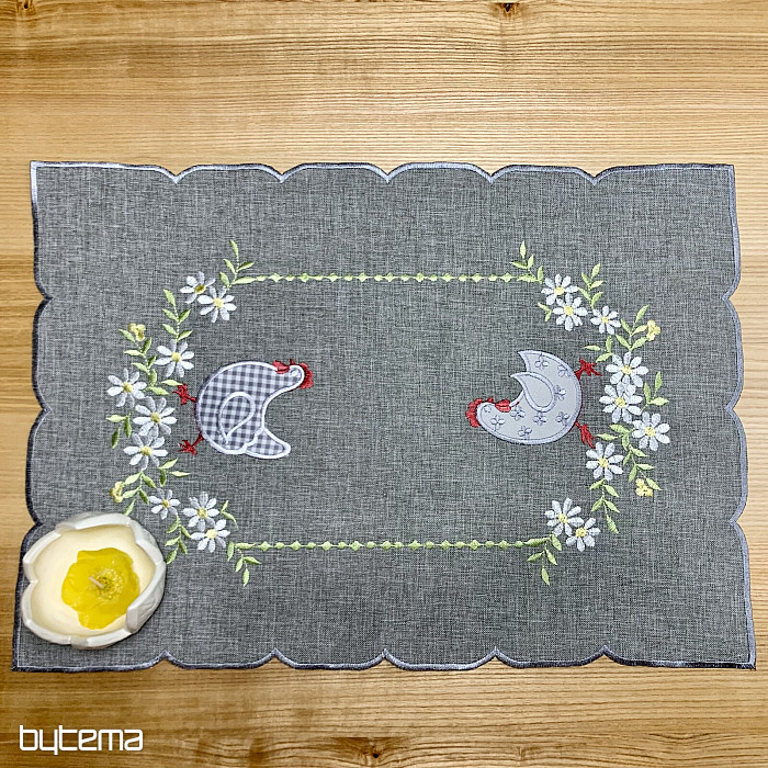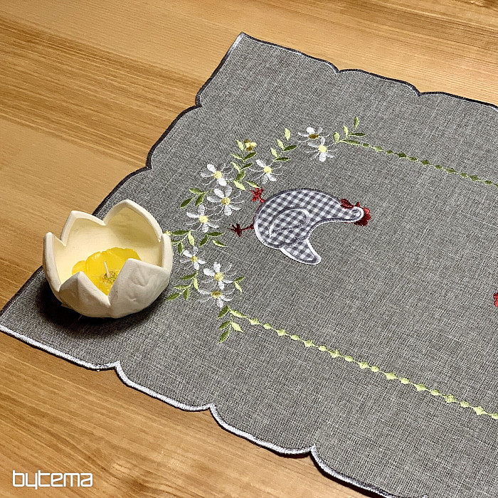 Vyšívané ubrusy a šály se slepičkami v jarních květech se dokonale hodí k velikonoční náladě.