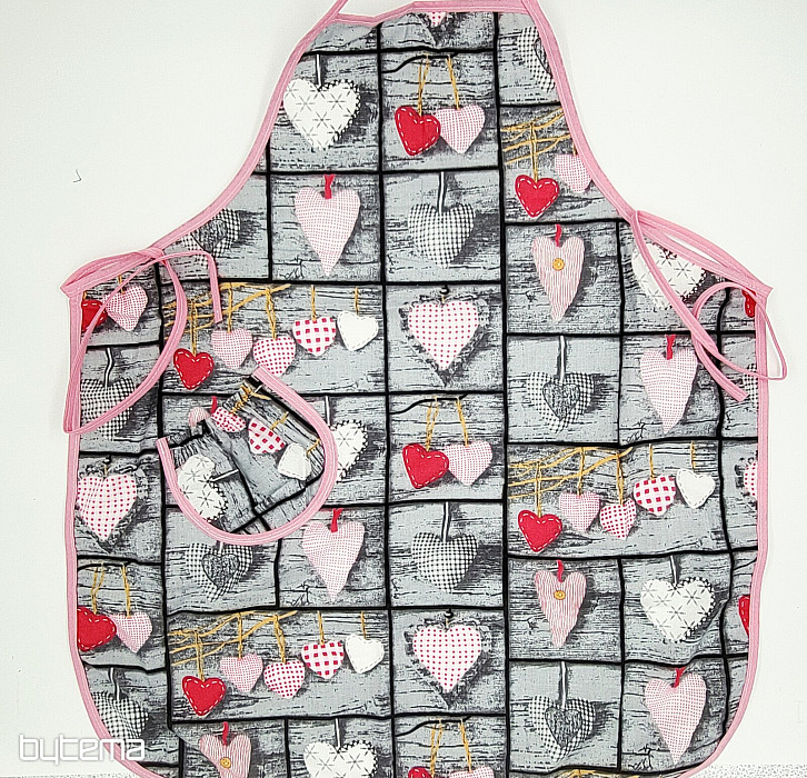 Krásná zástěra se srdíčky bude slušet každé kuchařce.